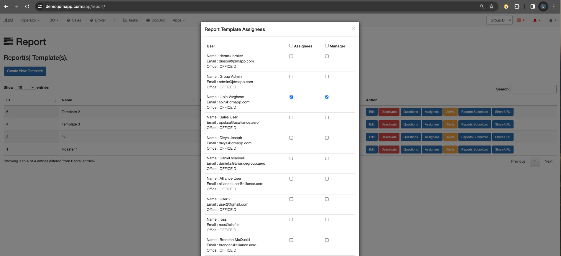 All the users that report is being assigned to can be accessed from the Assignees button.