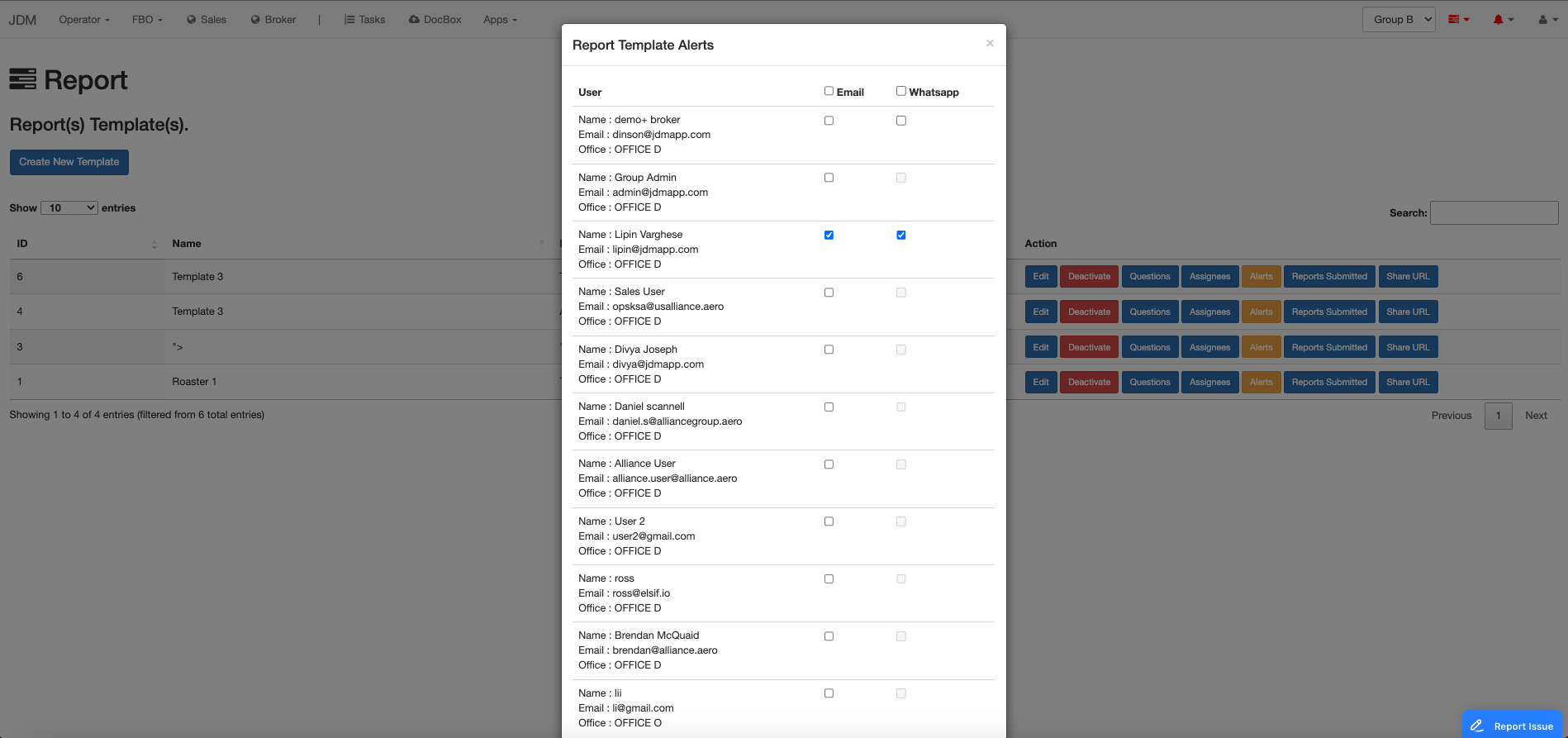 When a report is changed or submitted, users will be alerted over whatsapp and email in respective of the alert method chosen.