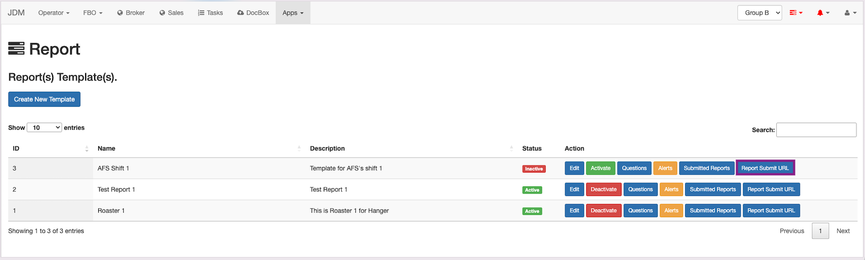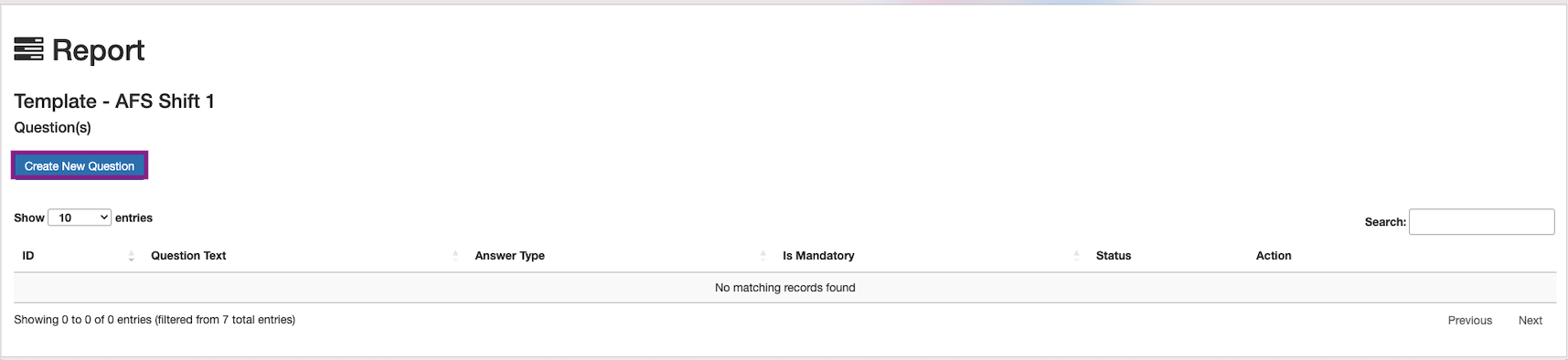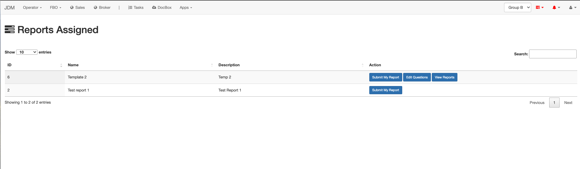Users can submit the report, edit questions, and view reports here. By clicking the Manage Reports button, users can create new report templates and manage them.