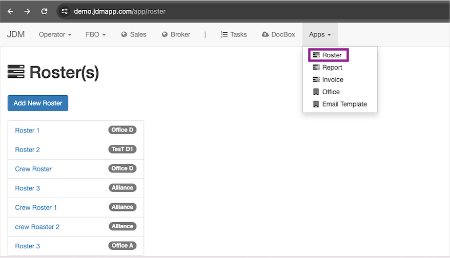 Roster can be created as a default roster or crew roster.The general purpose roster is created as default roster. The roster created as a crew roster can be accessed by the crew in the crew login.