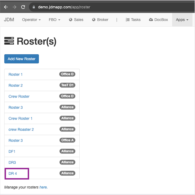 All the rosters are listed under Roster(s). Here we take DR4 as an example.