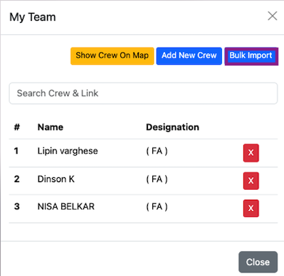 The crew list can be bulk imported into the team by clicking on the Bulk Import button.