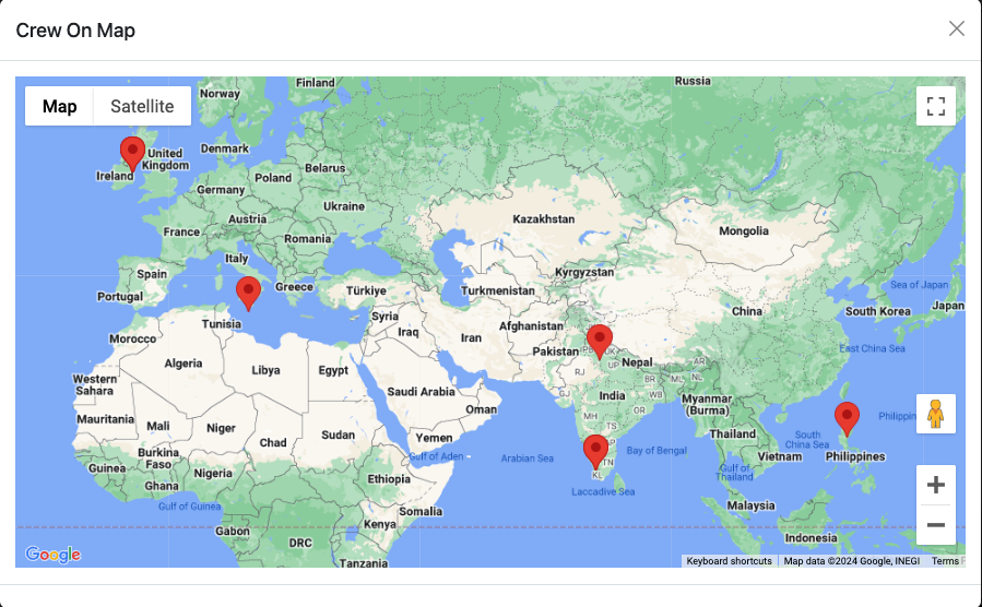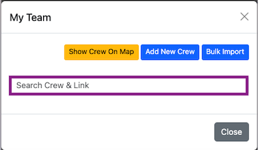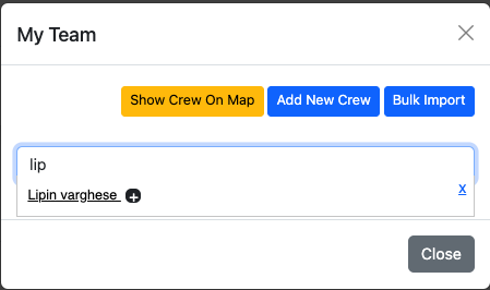 The location view of the crew linked with the team can be accessed by clicking on the Show Crew on Map button.