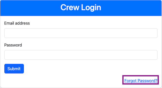 Now, enter the email address registered with the crew and the password reset will be sent to the email address.
