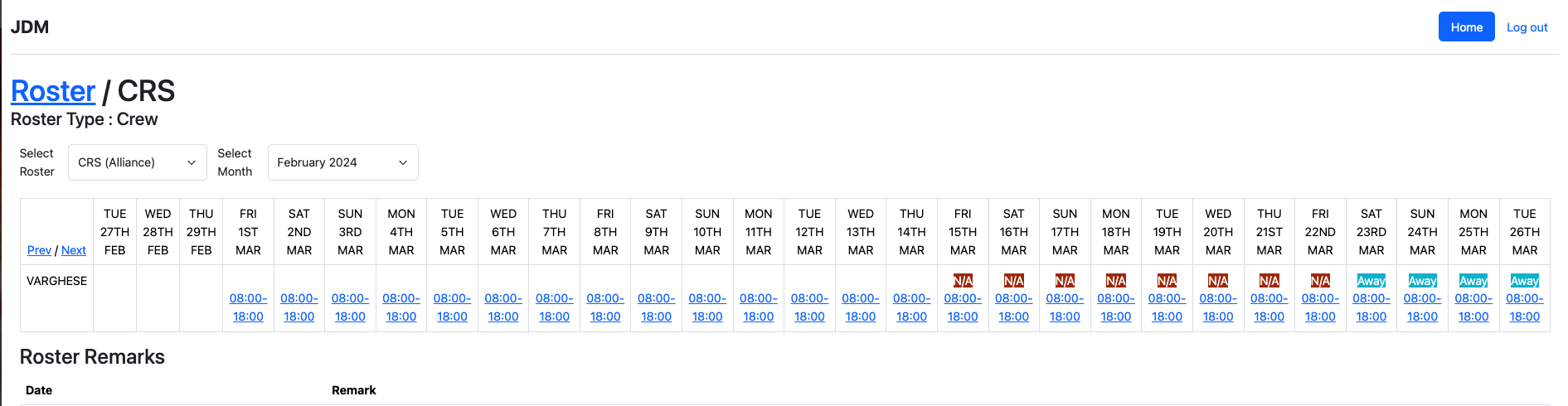 crew's can view the roster allocated in the crew login.