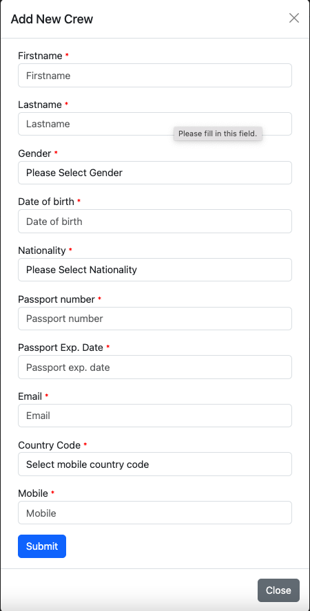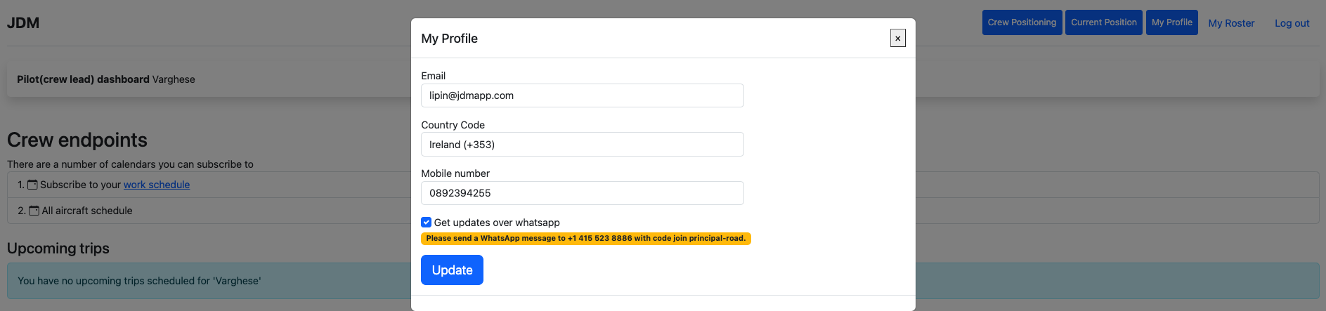 My profile is to manage the crew profile.Crew can manage the email, mobile number and whatsapp alerts on My profile section.