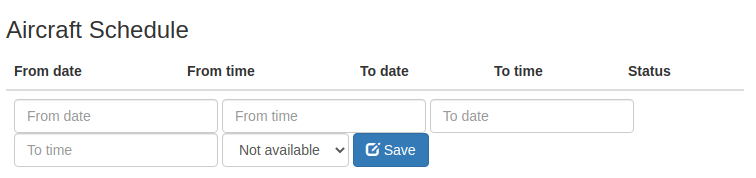 The aircraft schedule section is used to record and view whether an aircraft is avaliable or not.