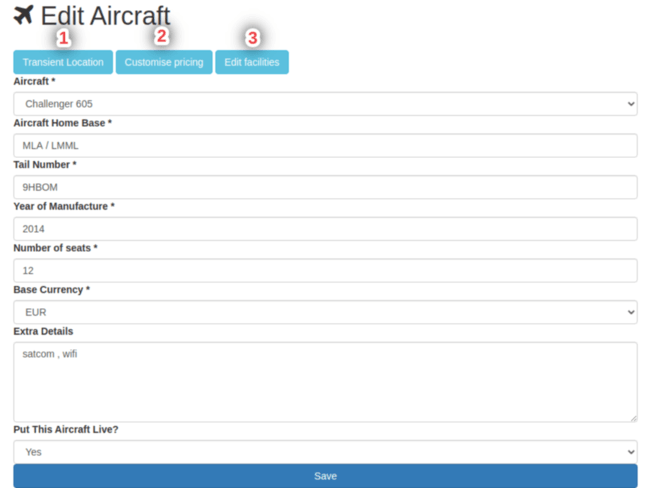 You can fill in the times for the aircraft and then click the "save" button to save the times.