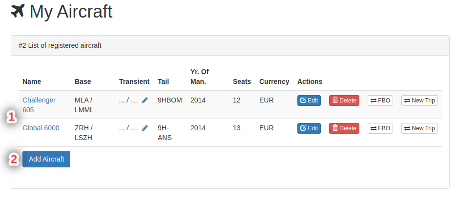 from here you can either 1, select an aircraft, or 2, add an aircraft to the list.