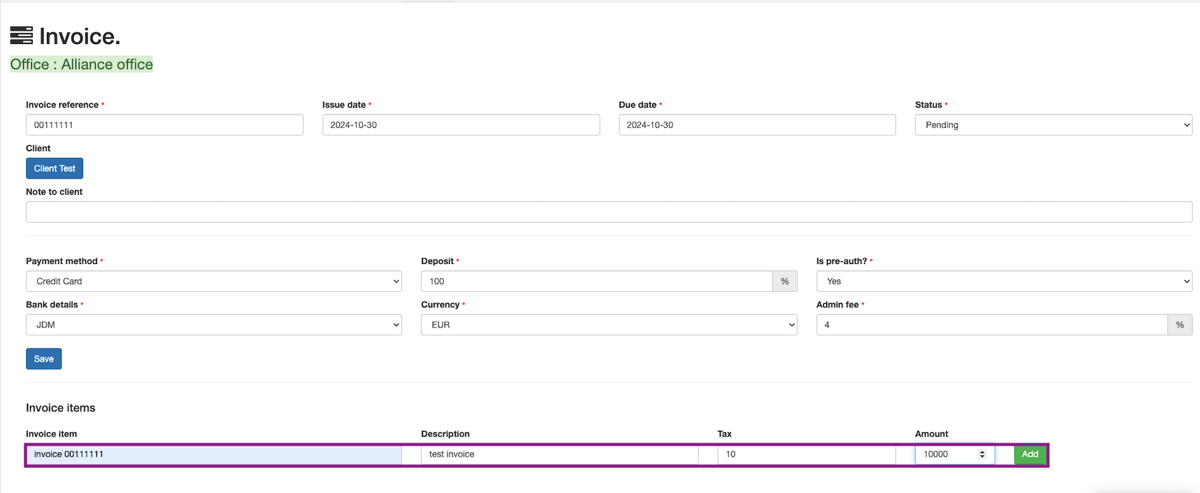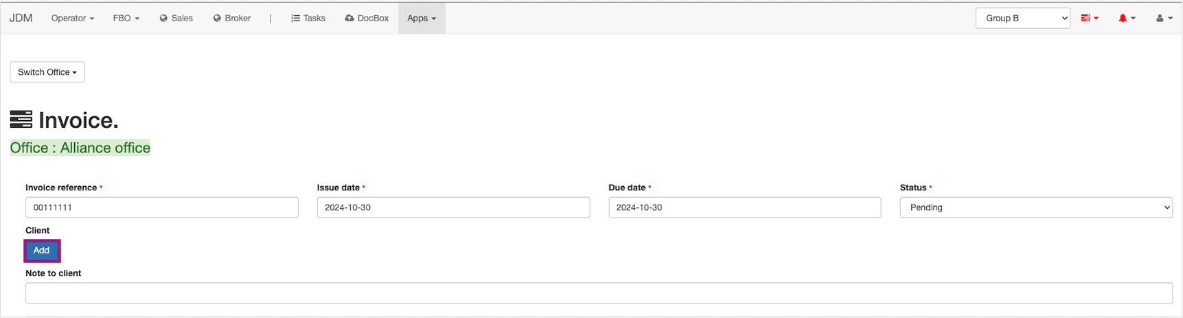 Now, the client has to be added to the invoice.