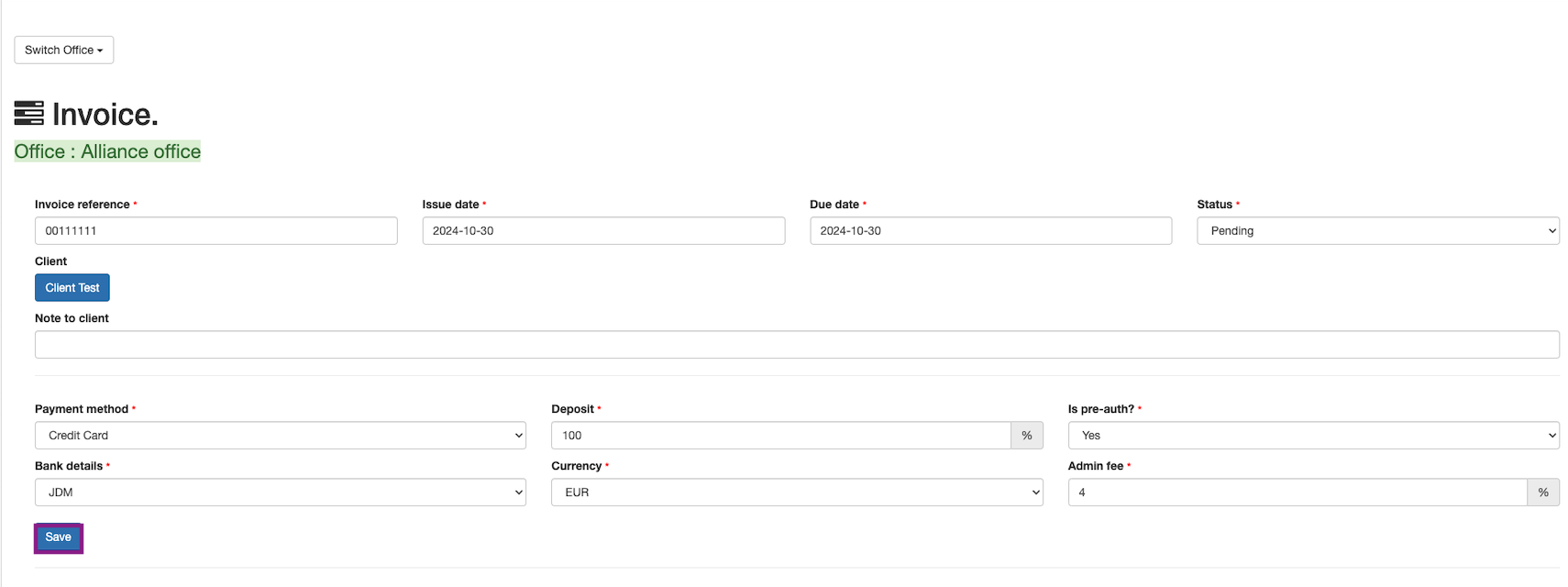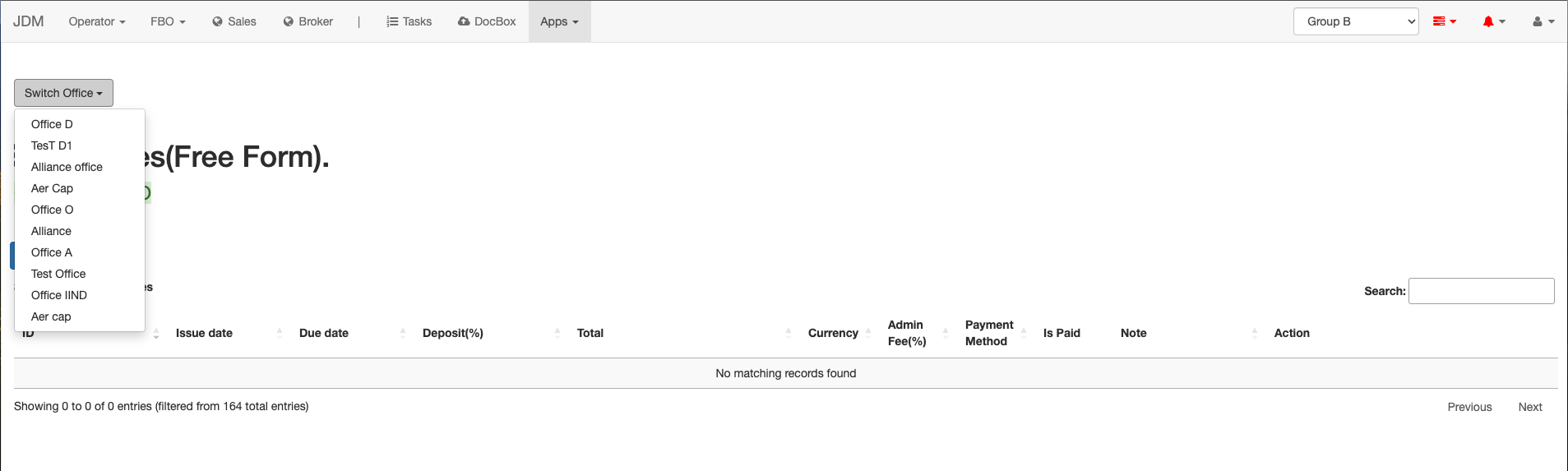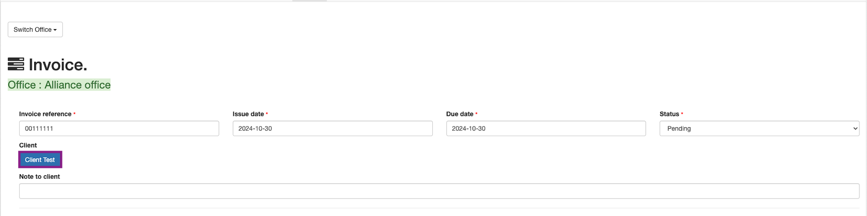 The invoices are against the offices. Users can select the office from the dropdown.The payments made will be reflected into the offices stripe account or, group’s default stripe account.