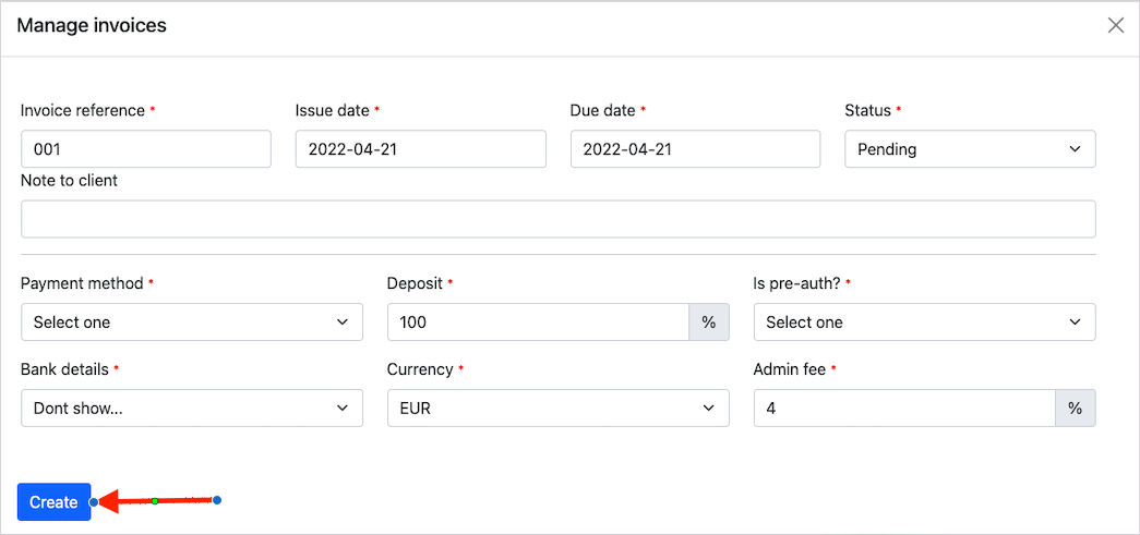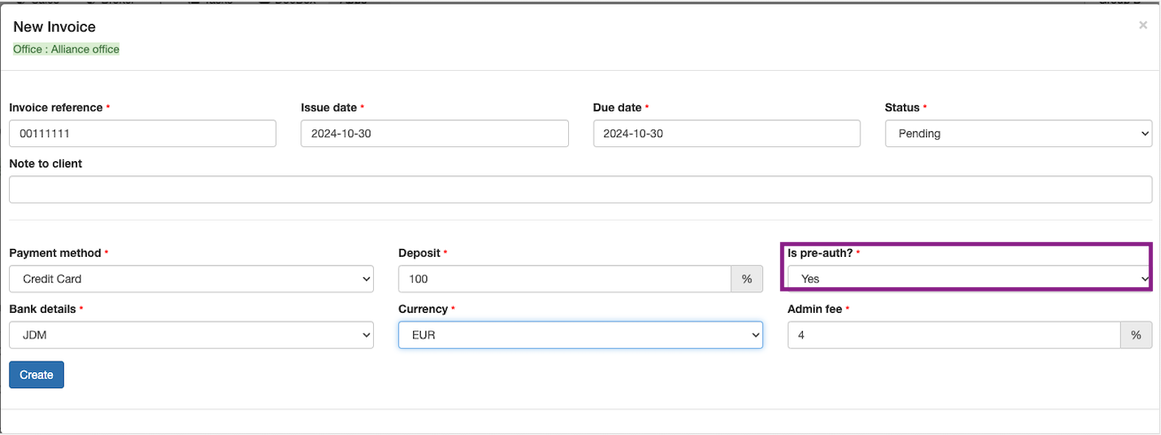An invoice can be created with pre-auth and without pre-auth.