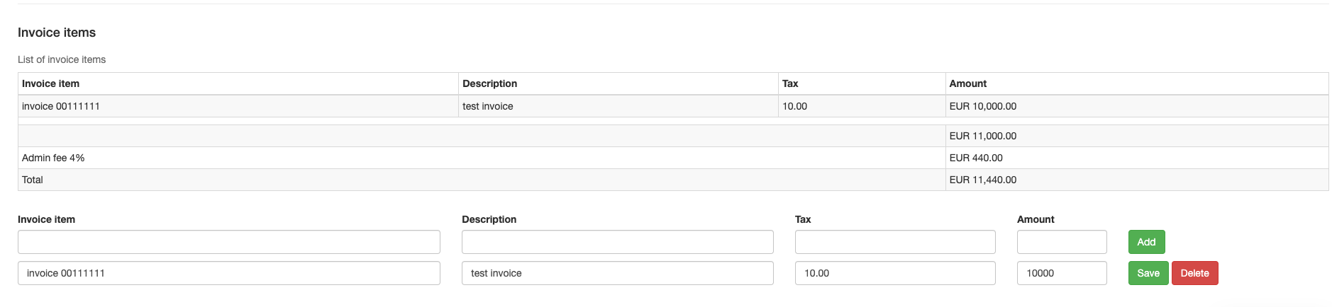 Now, the invoice item has to be created.