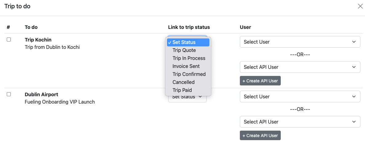 Once a trip status has been assigned to a trip, it can't be changed unless all the to-dos in the list has been completed.