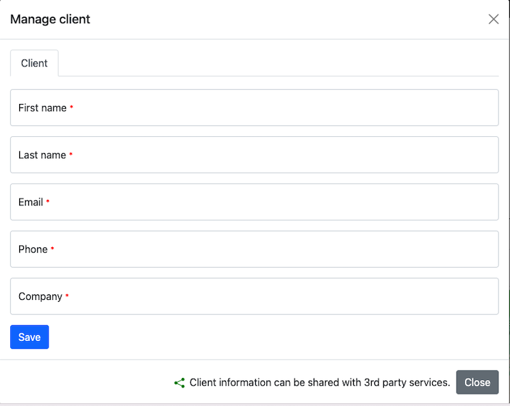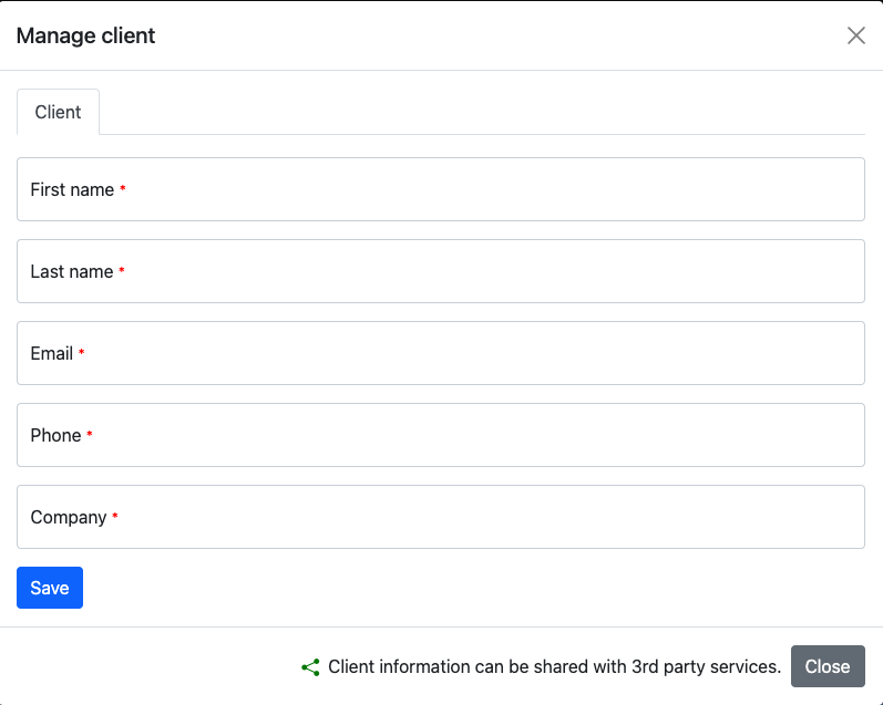 Now, to share the invoice with the client, click on the client button.
