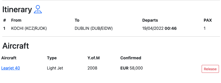 Click on the Book button to assign the aircraft for the trip.
