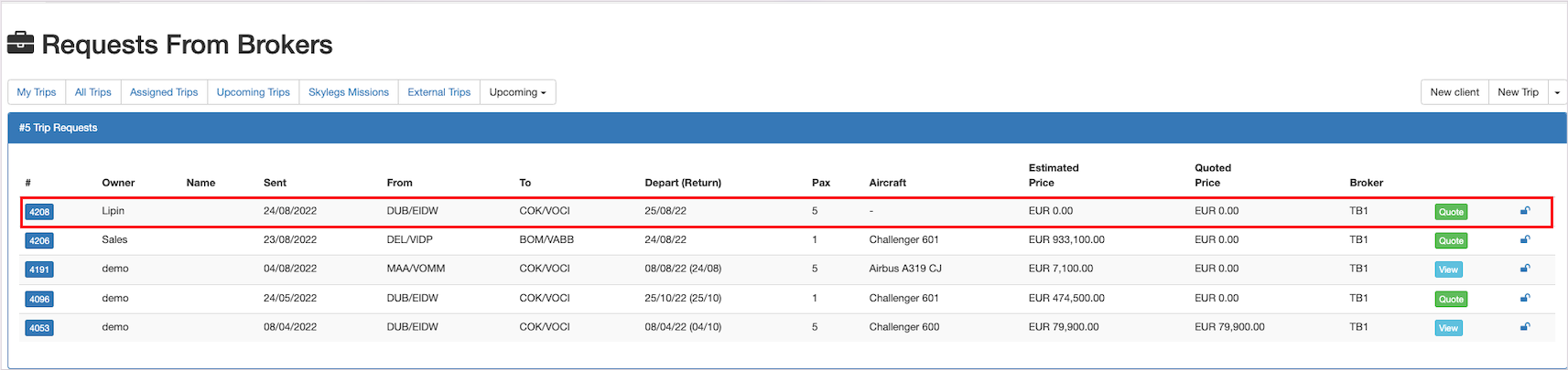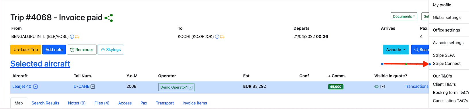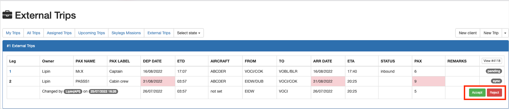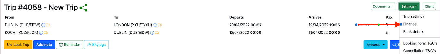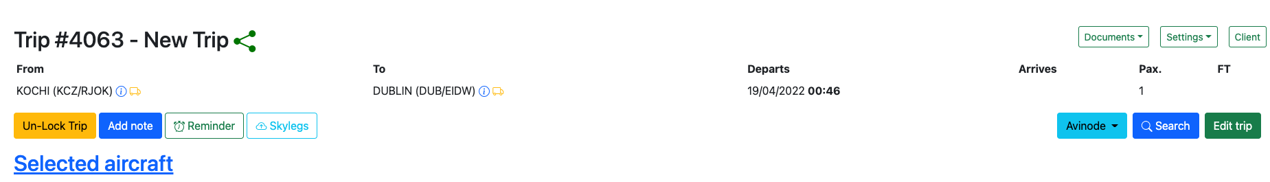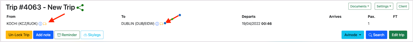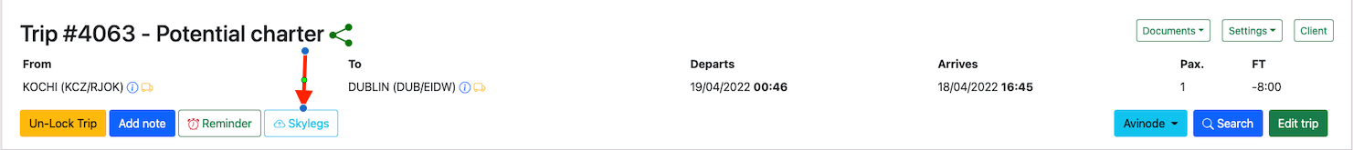Trip can be managed on Skylegs by clicking on the Skylegsbutton.