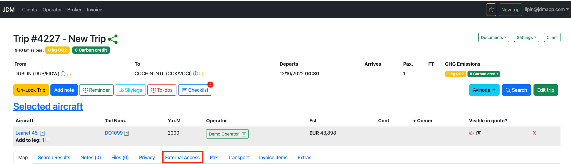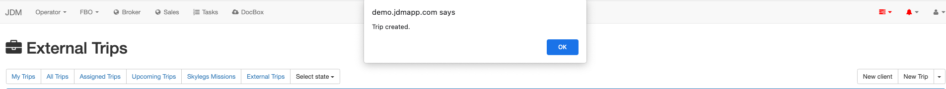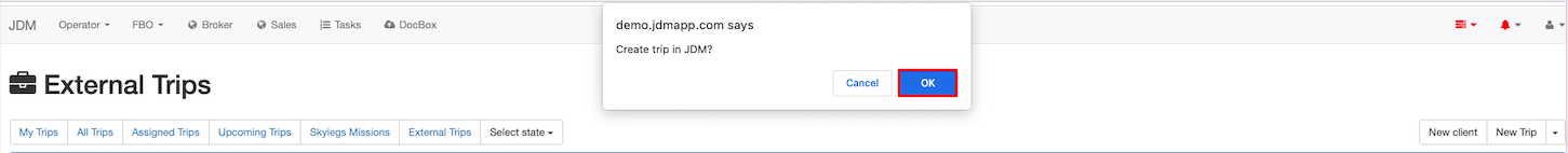 Now click on the Create Trip button to create and manage external trip in JDM.