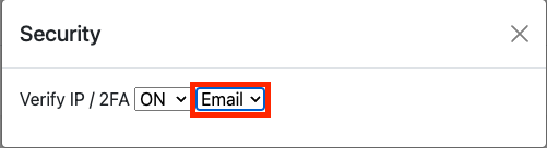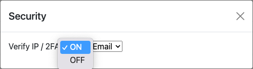 Email verification or 2FA security can be added to the external dashboard to identify unauthorized IP access. Click on the Security button to add the 2FA or email verification.