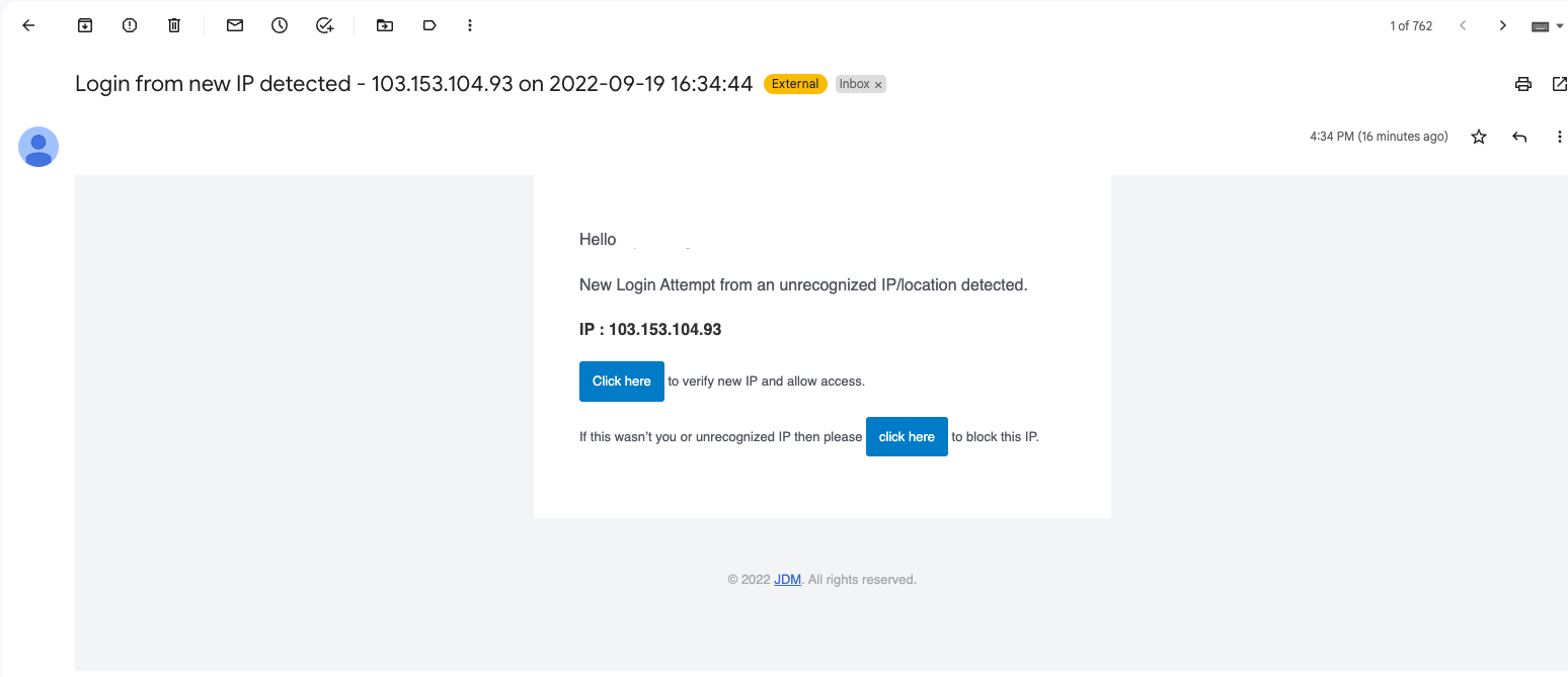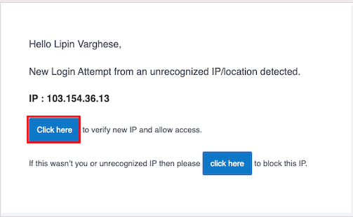 A user can deny unauthorized access from the IP verification email.