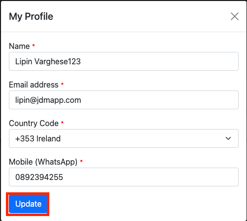 Now, make changes to the user profile and click on the Update button to update the user profile.