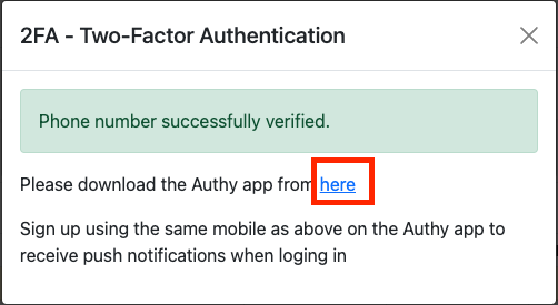 Authy App can be downloaded from the the successfull registration of the mobile number.