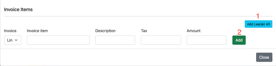 Now, add aircraft to the invoice(1) and click on the Add button.