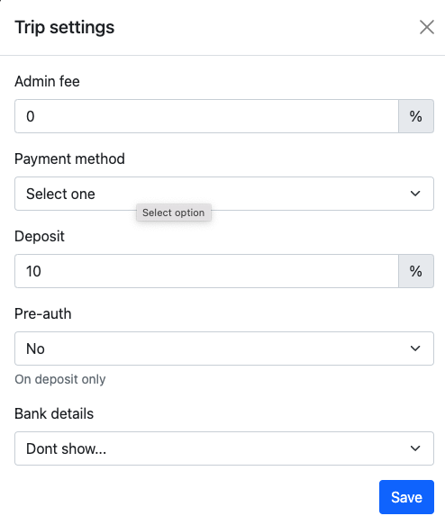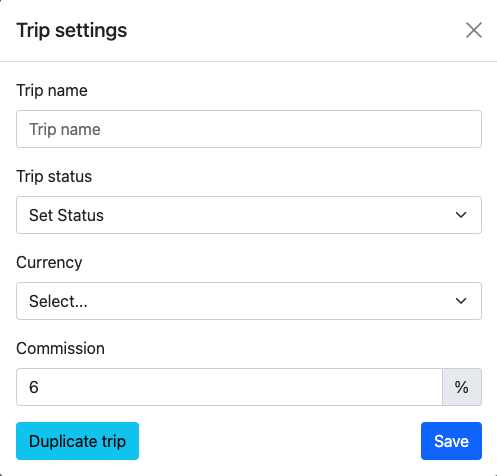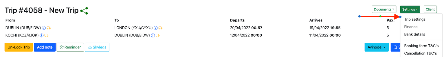 Trip settings can be added from the settings button on the top right hand corner.