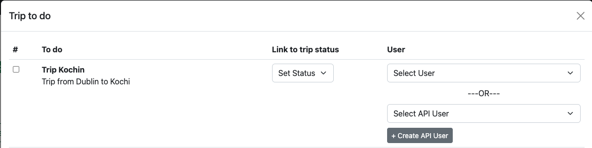 Select the to-dos by clicking on the checkbox on the left hand side and click on theImport button for importing the to-dos into the trip.