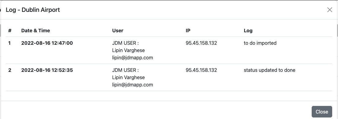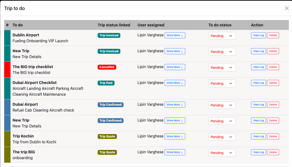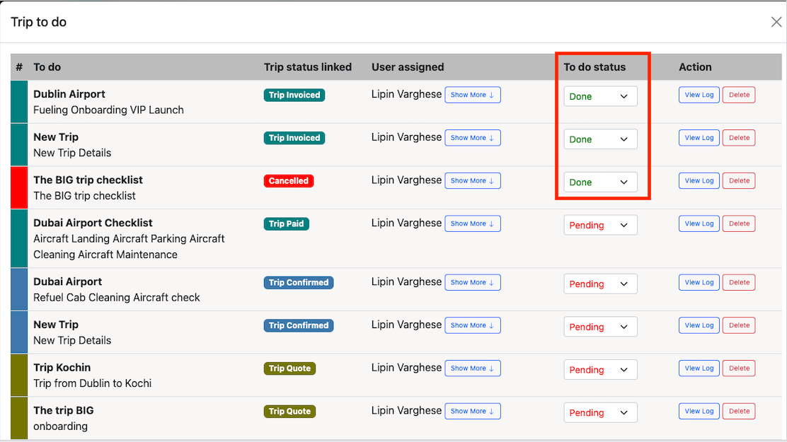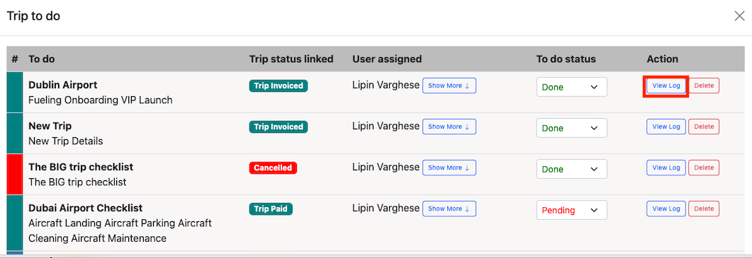 Once all the to-dos are done, trip status can be changed down to done. All the actions against a to-do is logged and can be viewed on the view log section.