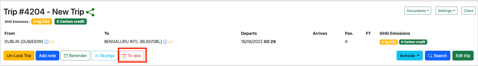 To-dos can be added to a trip by using then To-dos button in the trip dashboard.
