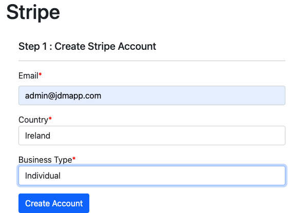 Stripe account can be created for an individual by selecting the Stripe Connect from the user