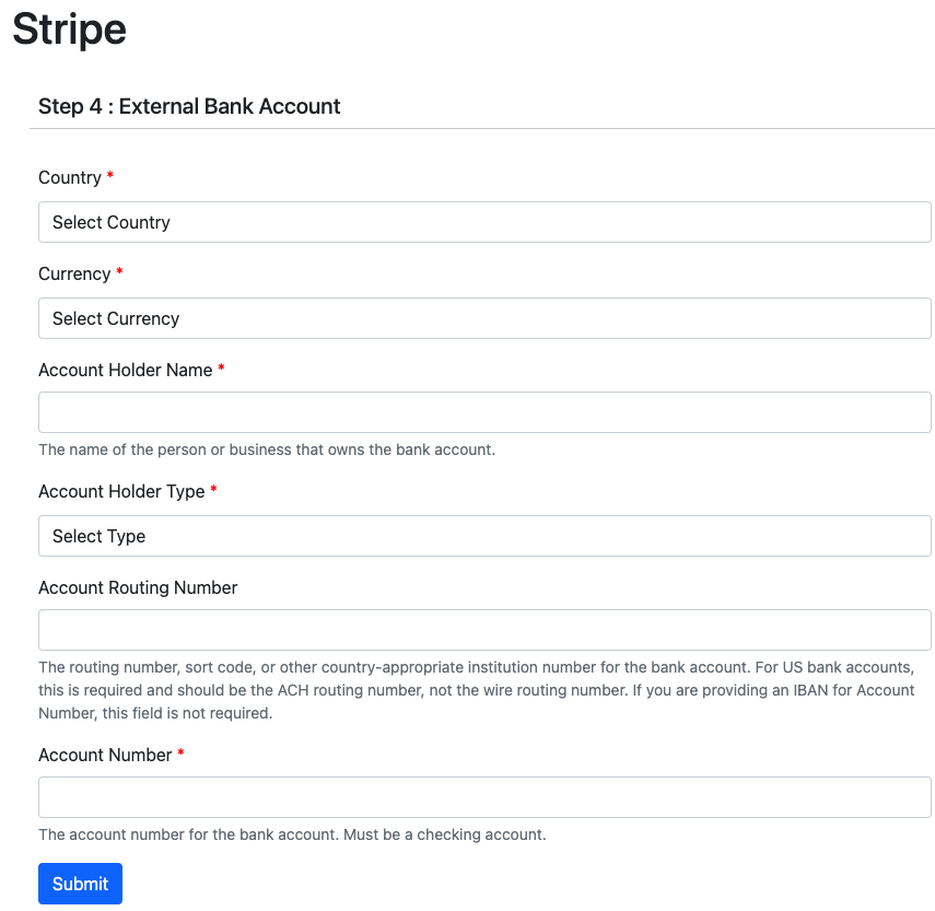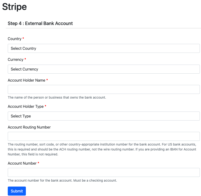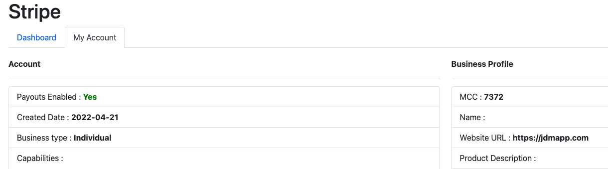 Enter the details and click on the submit button. It will take you to the individual Stripe dashboard.
