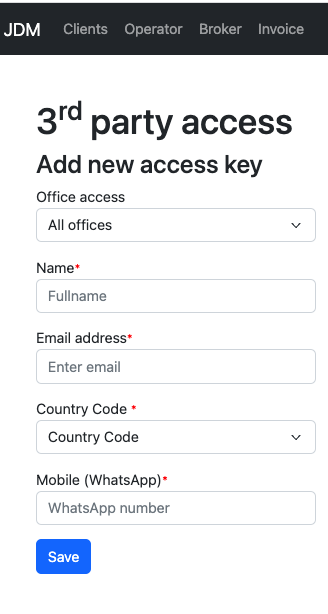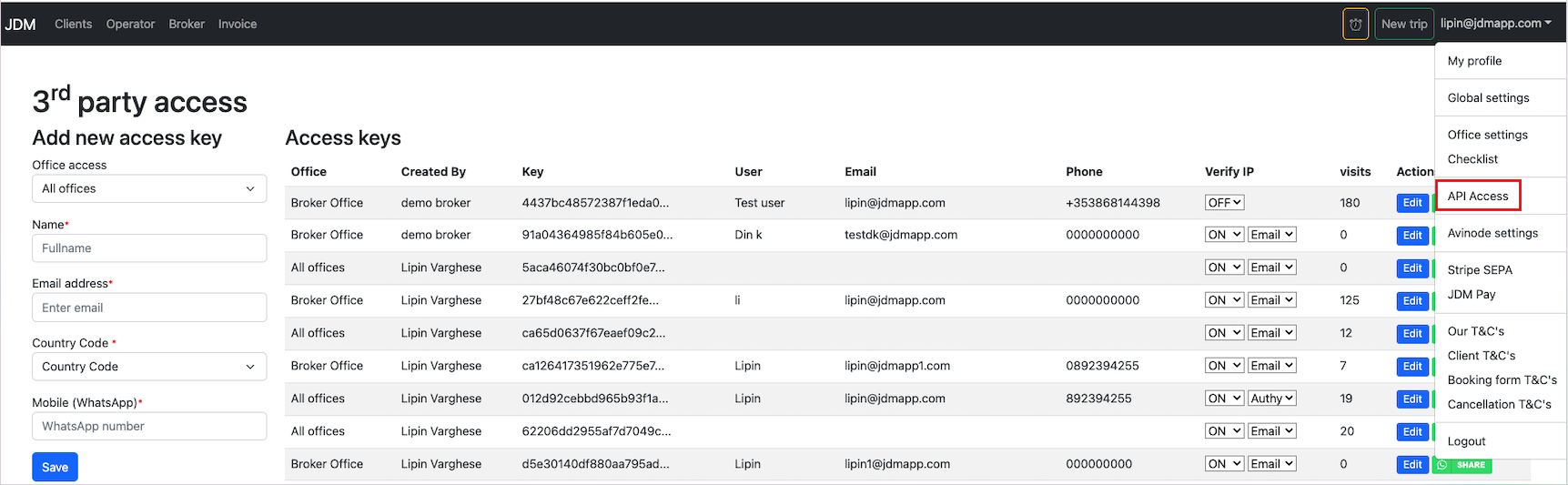 Third party access keys can be used for an external person to create and manage trips in JDM.