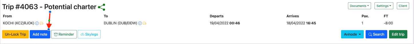 A note can be added to trips by clicking on the Add Notebutton.