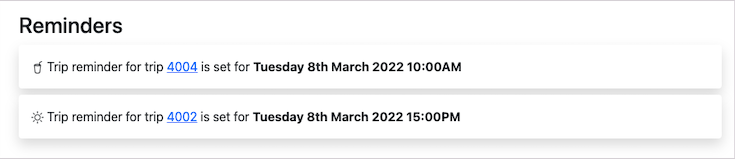 All the trip reminders can be viewed by clicking on the