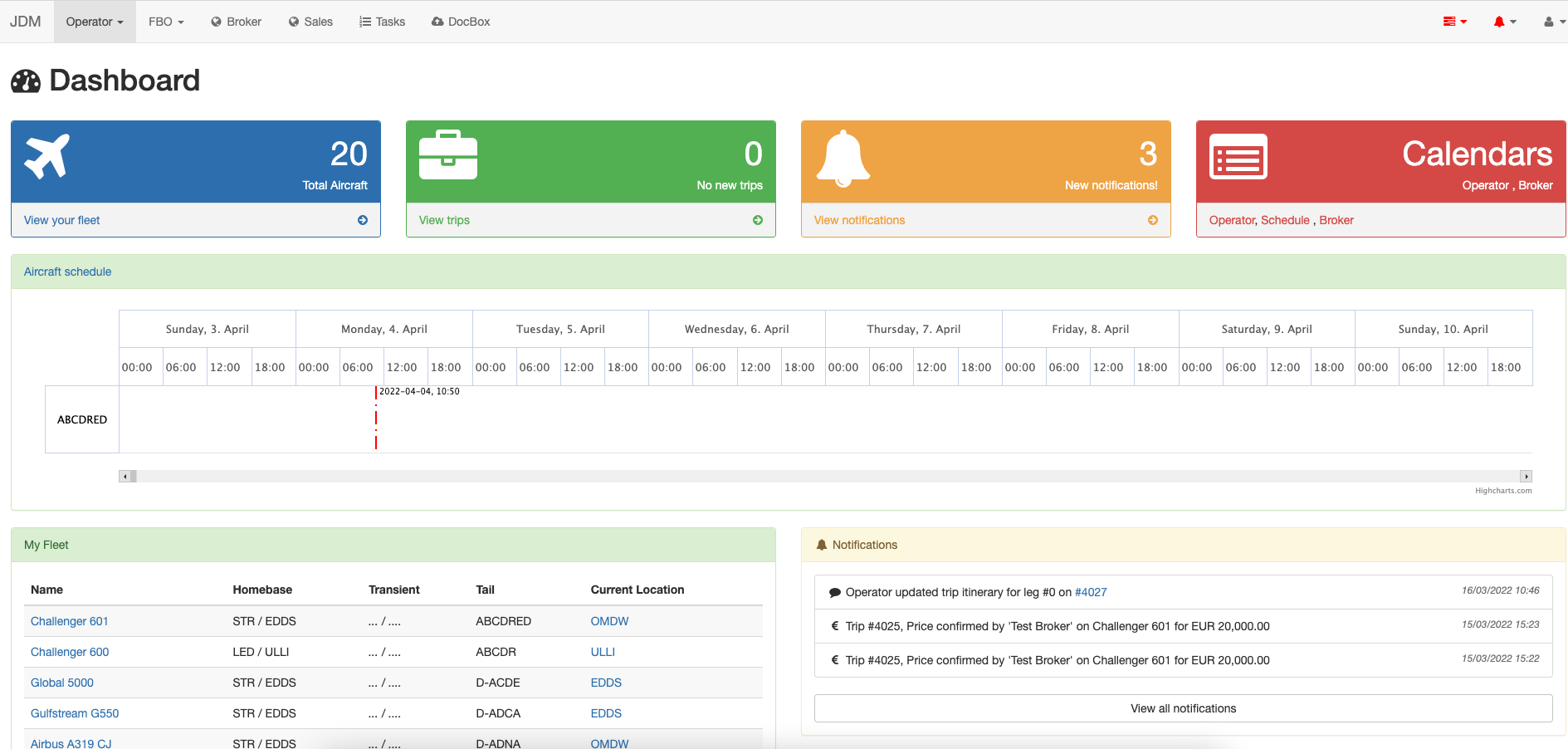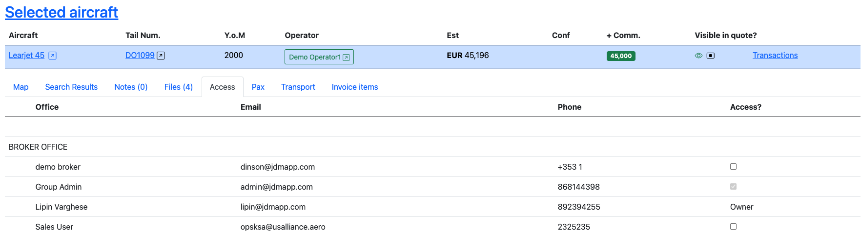A user can search for aircrafts on Avinode through JDM, with avinode login credentials.