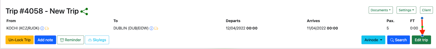 A trip can be modified by clicking on the Edit Trip: button.