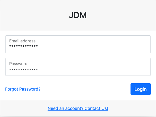 Login credentials bring you up to the JDM dashboard.