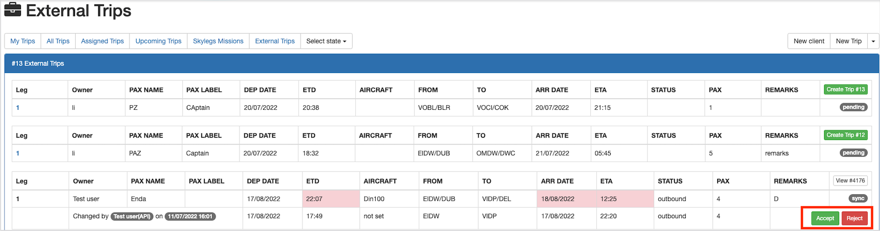 An external trip leg can be updated on JDM. This time, the API user has to approve the changes which have been made by the JDM user.