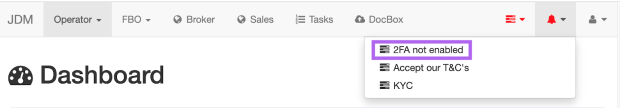 You will see a message in the Alert drop down about enabling 2FA, click on this link