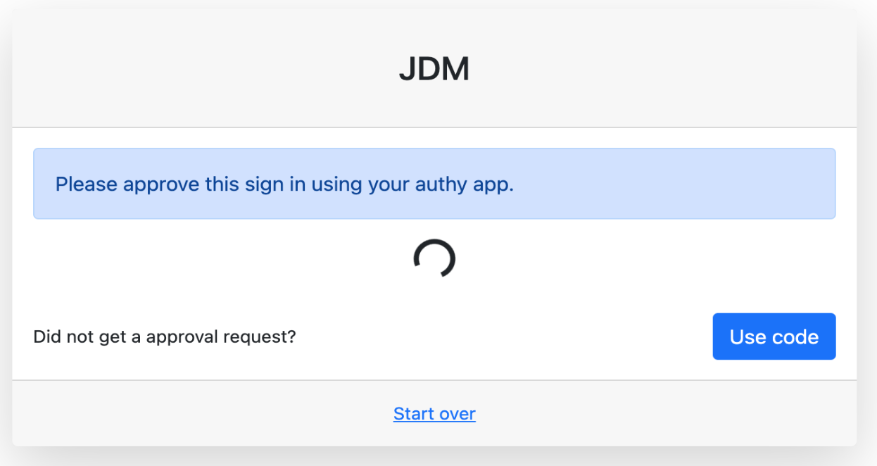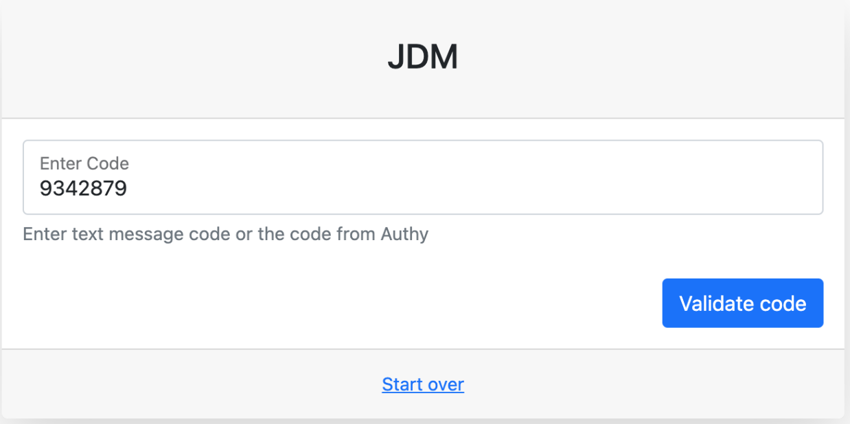 Enter the code OR You can enter the code generated in your Authy Application for JDM.