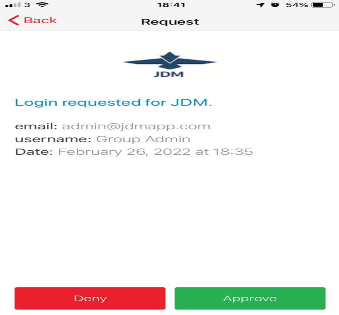 Click on the request and you get a screen like below, click the green Approve button and you will be logged into JDM.