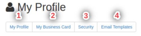 When you go to your profile settings there are four sections: My Profile My Business Card Security Email Templates
