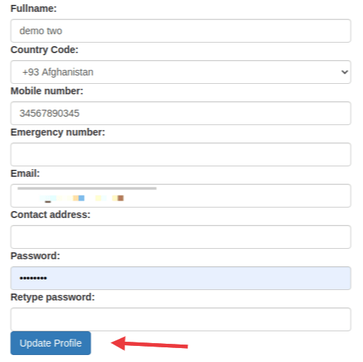 1. Here you can change your details about your account and then you can press the Update Profile to update your profile.