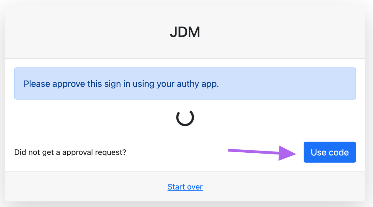 If you don't have the Authy app setup yet, you can request an SMS code. Click the Use Code button and a code will be texted to you.